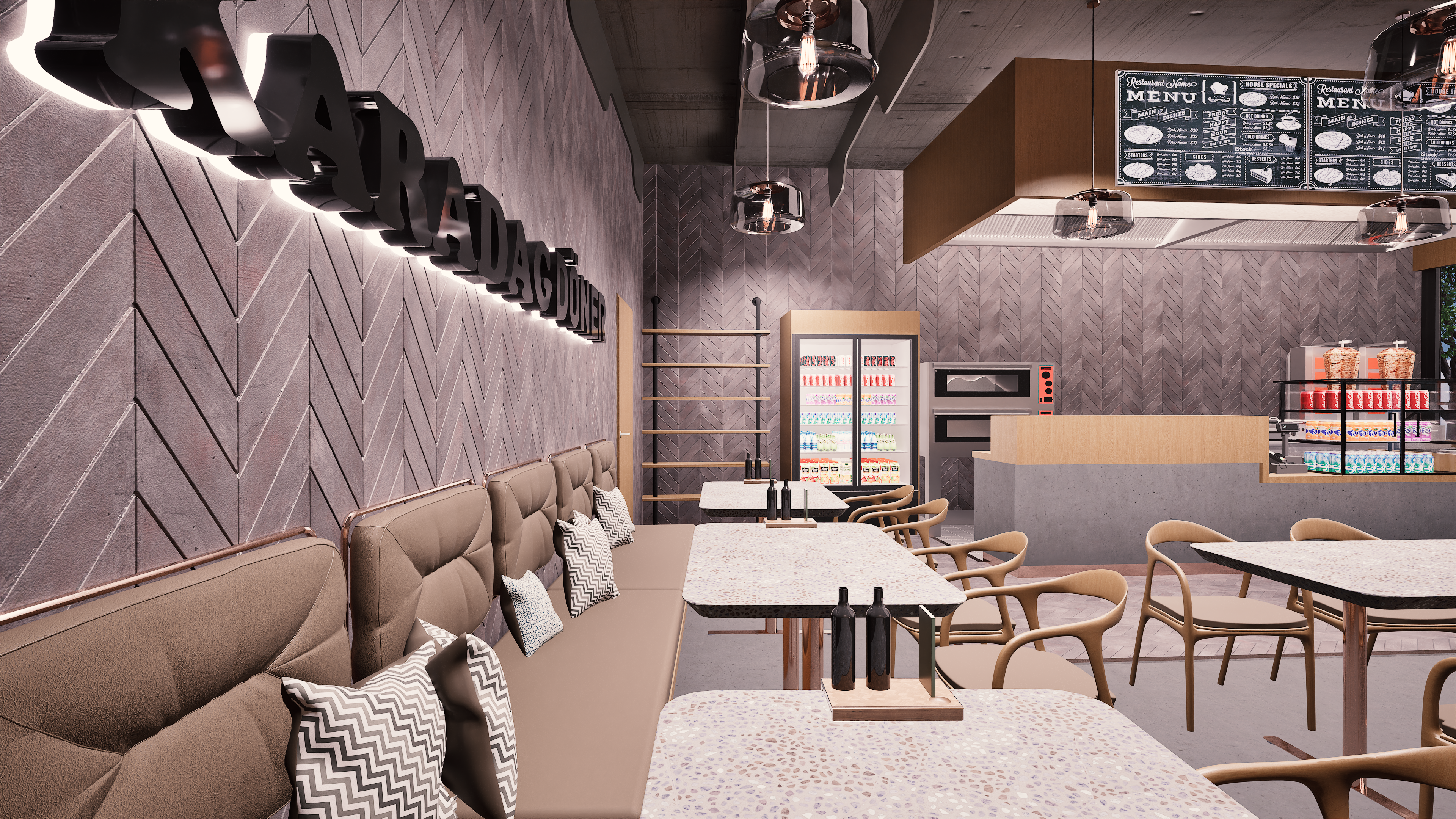 Ziel war es, eine moderne, einladende Atmosphäre zu schaffen, die sowohl die Dynamik des Schnellgastronomie-Konzepts als auch die Wärme und Authentizität der Marke widerspiegelt.