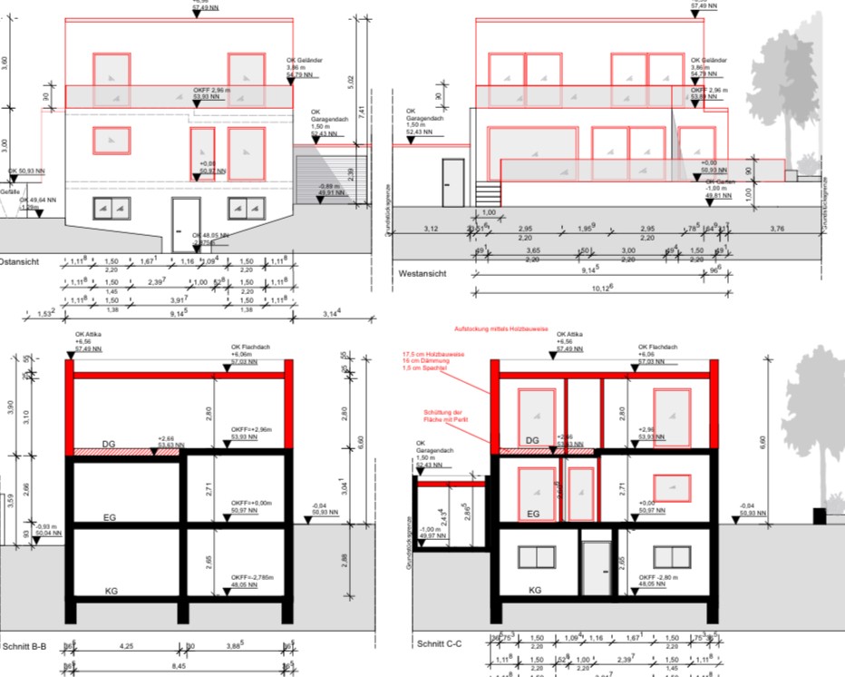 Entwurf und Bauantragsplanung – Dachaufstockung eines Einfamilienhauses
