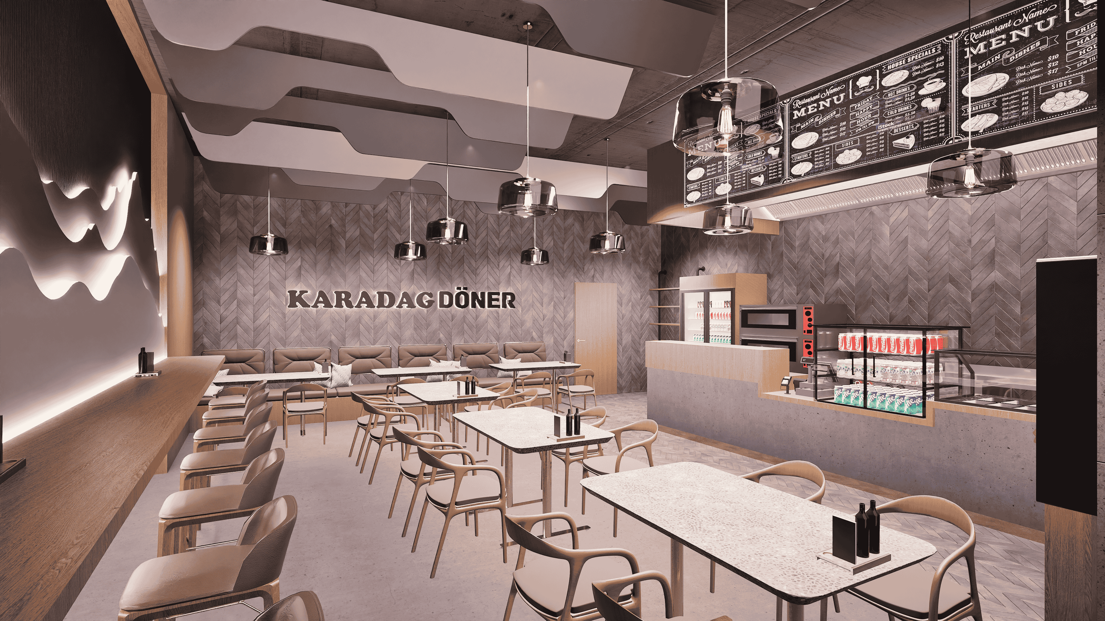 Die erfolgreiche Marke „KARADAG“, bekannt aus der Supermarktbranche, beauftragte ARCHITECTUS – bau + projektmanagement mit der Entwicklung eines ganzheitlichen Innenraumkonzeptes für das neue Franchise „KARADAG Döner“.