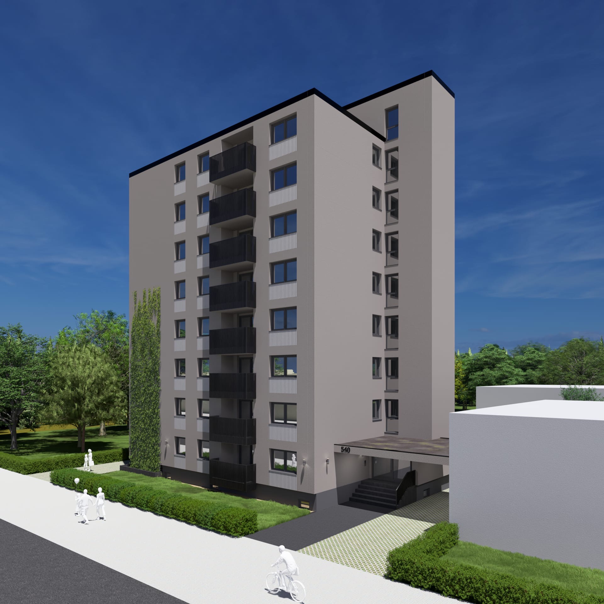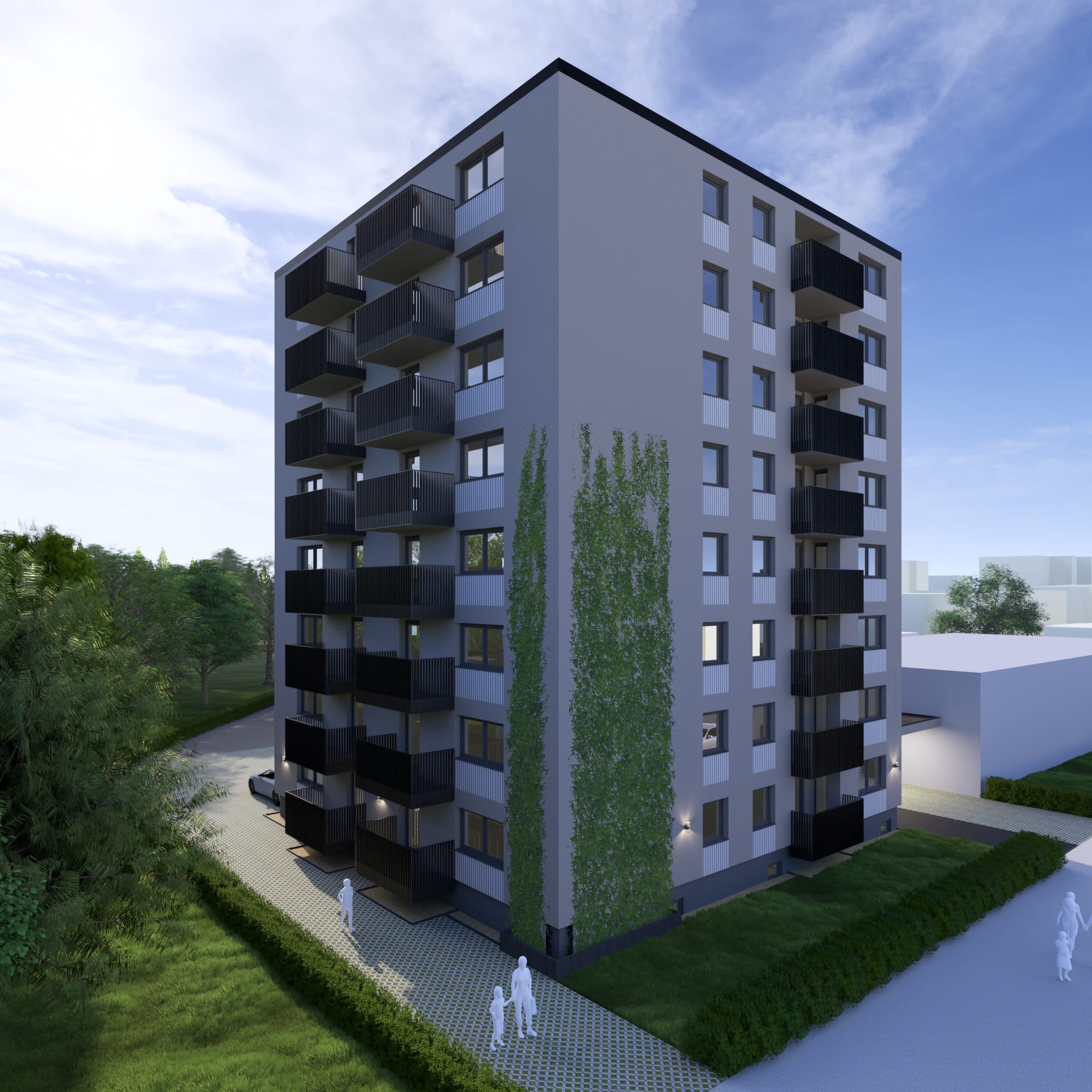 Die Gebäude werden nach dem energetischen Standard GEG 55 errichtet und verbinden modernes Wohnen mit nachhaltiger Bauweise.
