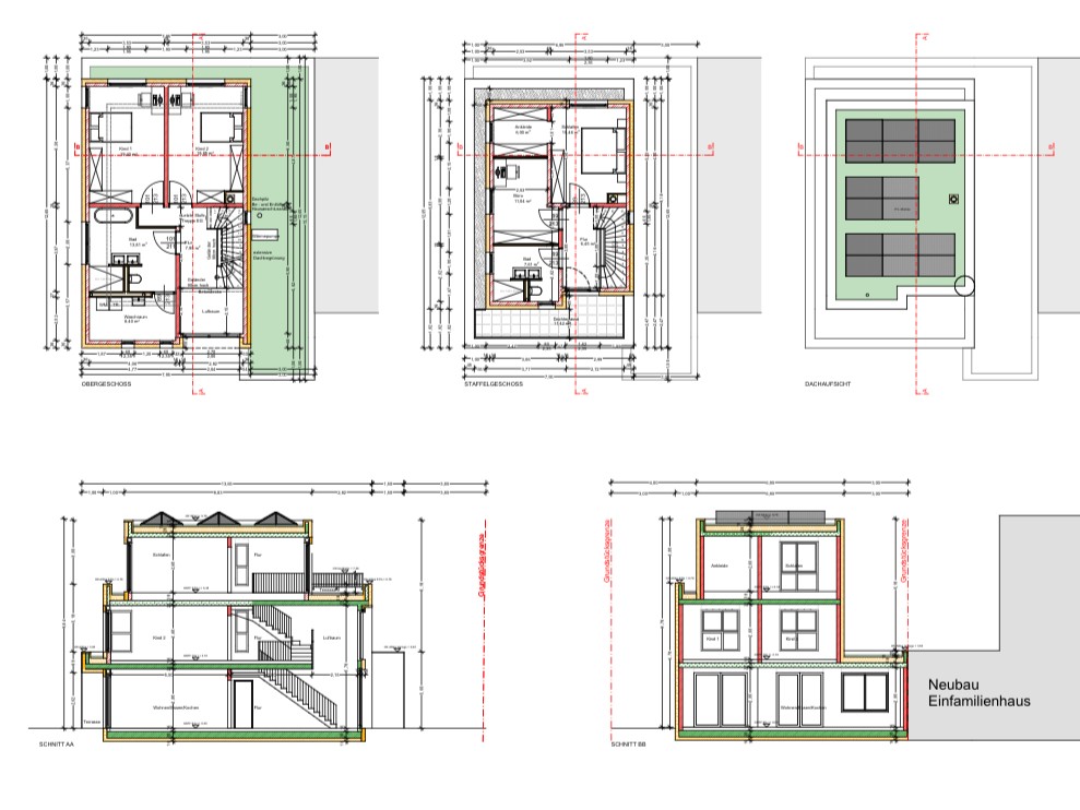 Entwurf und Bauantragsplanung – Dachaufstockung eines Einfamilienhauses